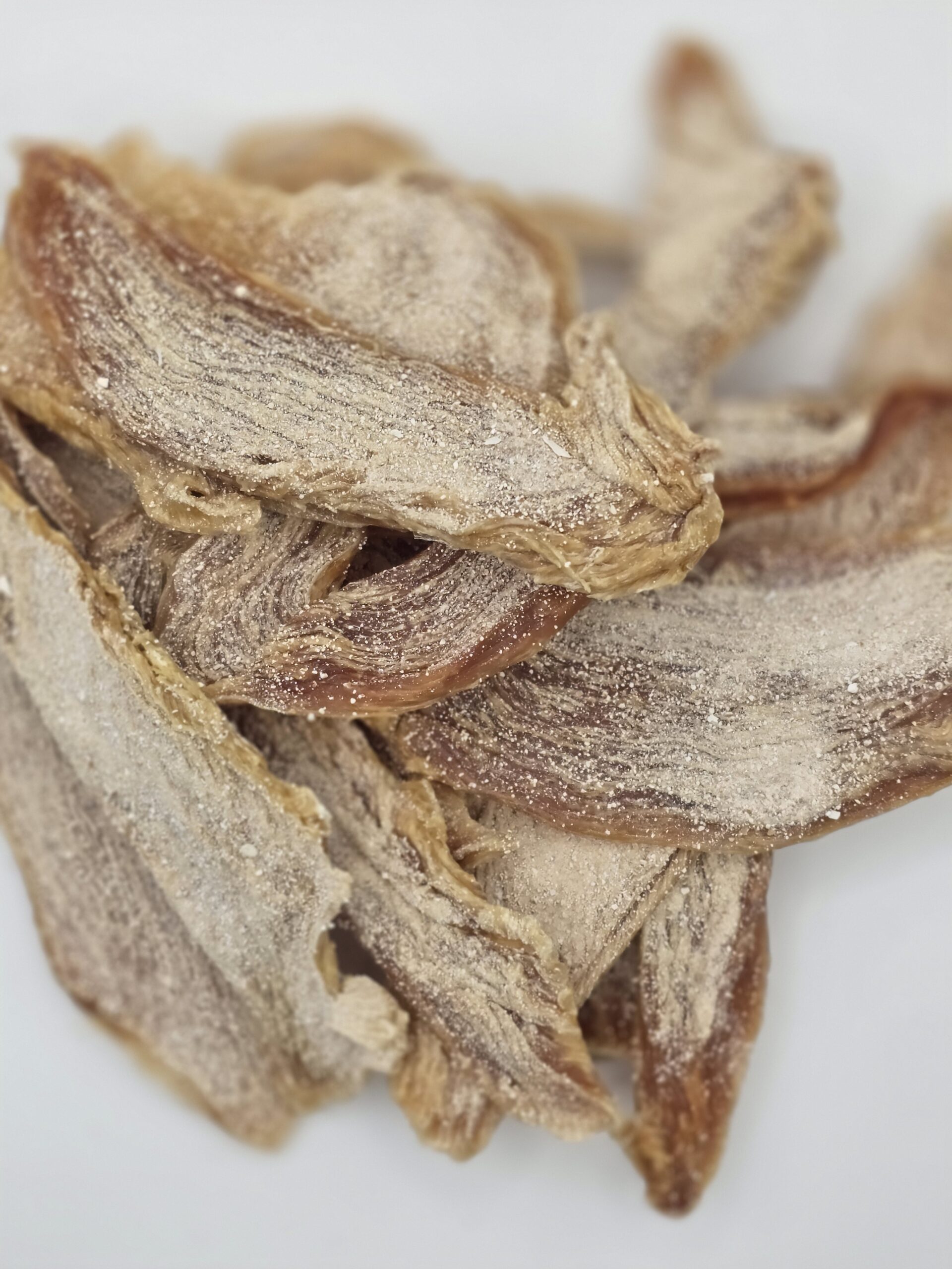 Real chicken is dehydrated slowly to concentrate flavor and protein and mixed with finely ground eggshell for a natural source of calcium. This simple prep preserves nutrition and texture, creating a crunchy treat your dog will love.