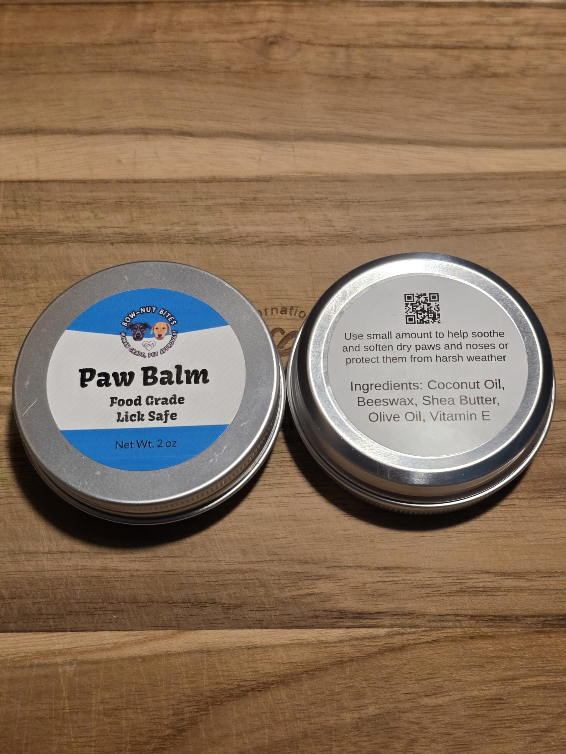 Coconut oil, beeswax, shea butter, and olive oil are melted into a smooth liquid, then allowed to cool just enough to hold vitamin E before being poured into tins. Once fully set, this edible balm is ready to soothe dry paws, noses, and skin.
